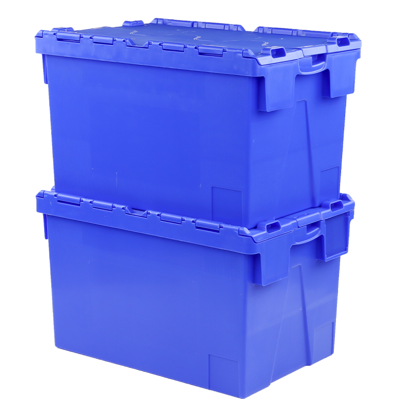Bac avec couvercle "crocodile" à charnières intégrées qui peut être ouvert des 2 côtés. Couvercle à verrouillage intégré : aucun couvercle perdu, les couvercles pendent verticalement le long du bac lorsqu'ils sont ouverts.. Empilable fermé et emboîtable lorsque le couvercle est ouvert pour optimiser le stockage et le transport vide. Bac compatible avec de l'automatisation grâce aux couvercles avec bords biseautés pour une transition en douceur sur les convoyeurs. - Scellés de sécurité inviolables en option pour protéger les contenus. - Supporte jusqu'à 25 kg de charge unitaire. - Emboîtabilité jusqu'à 70% à vide.
