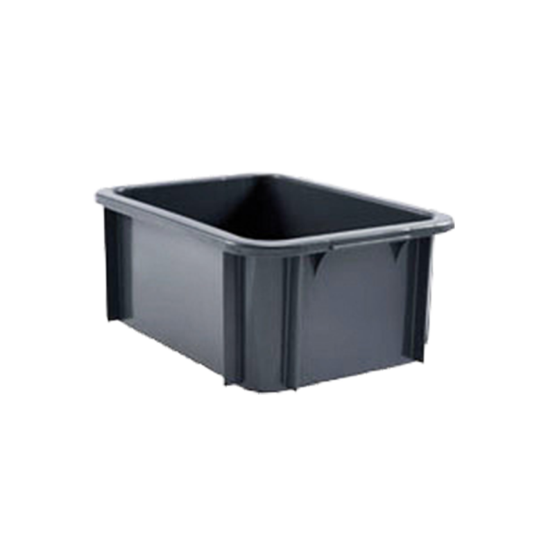 Empilable avec et sans couvercle. Renforts verticaux pour reprendre la charge et empêcher toute déformation du bac.