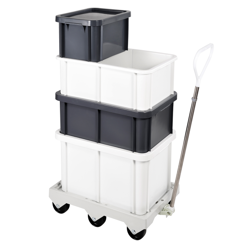Empilable avec et sans couvercle. Renforts verticaux pour reprendre la charge et empêcher toute déformation du bac.