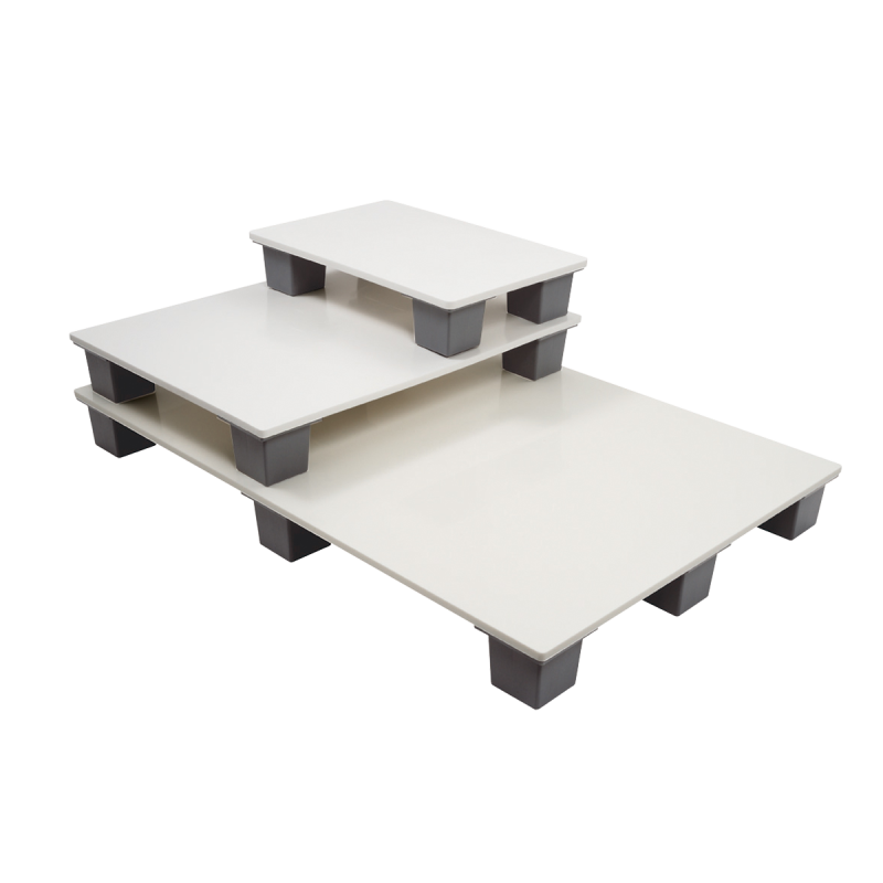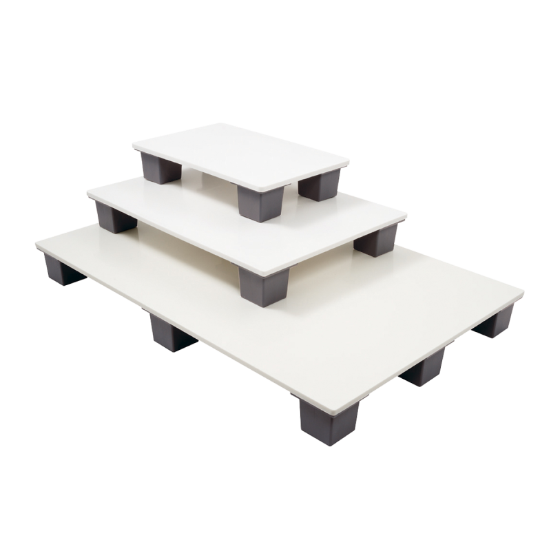 Palette plastique certifiée contact alimentaire. Idéale pour l'agencement d'une chambre froide ou d'une zone de préparation. - Résistance à la charge en mode statique : 600 kg - Résistance à la charge en mode dynamique : 400 kg Stockage interdit sur des racks : les plots des palettes sont incompatibles avec les lisses des racks.