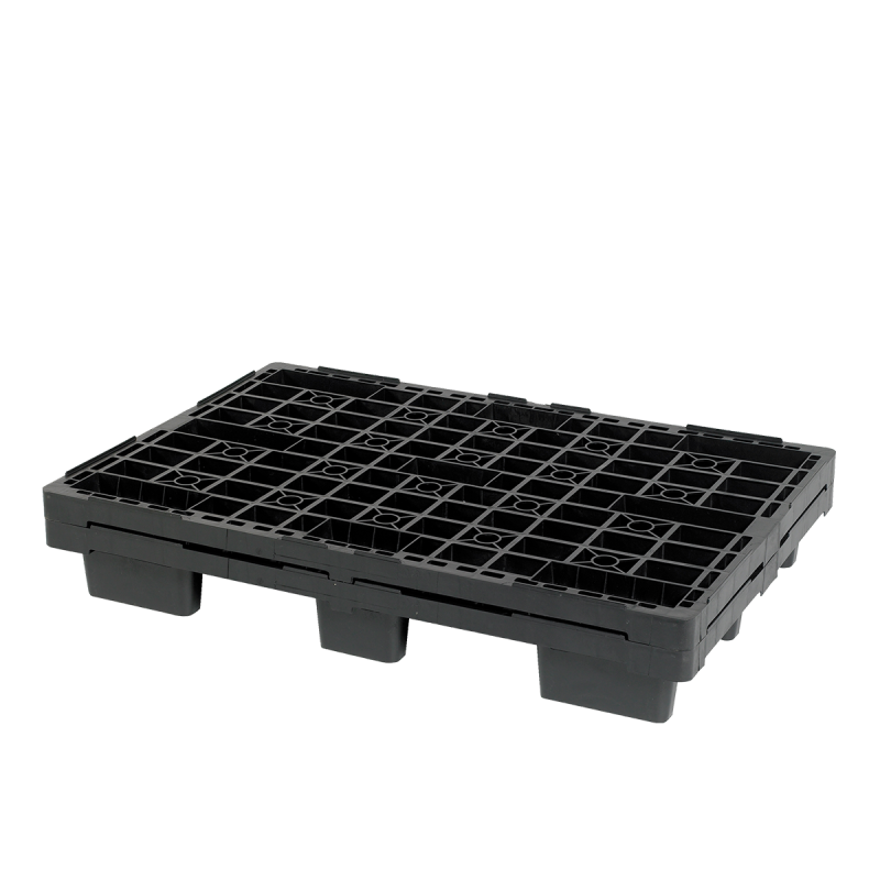 Palette plastique légère emboitable. Permet un gain de place lors du stockage à vide.