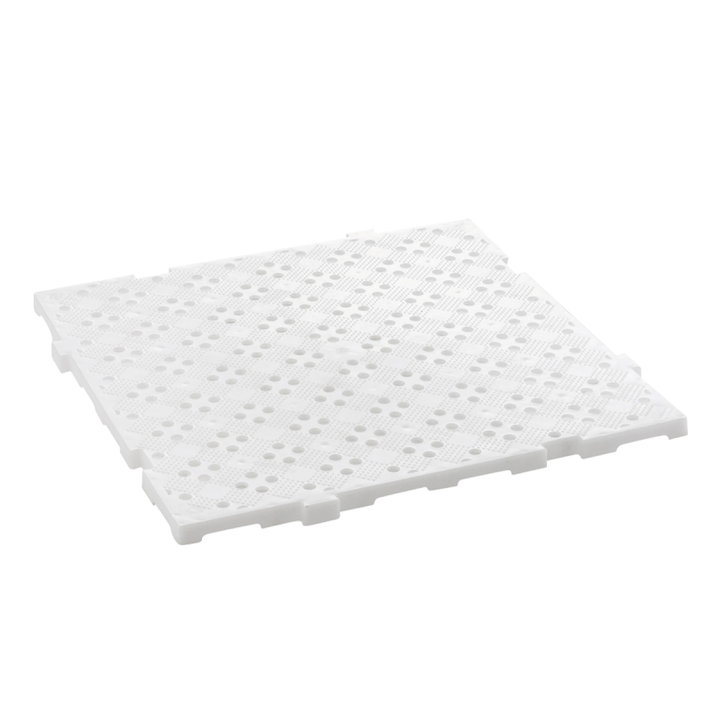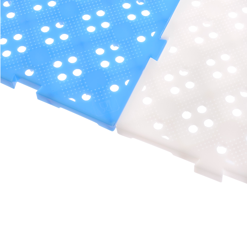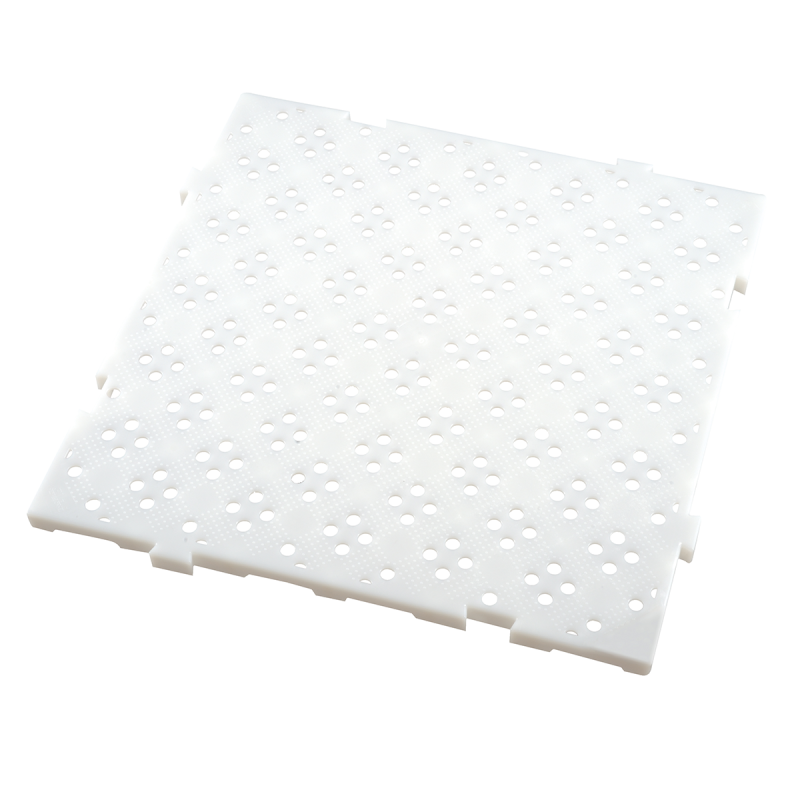 Facilement nettoyable (en machine, au jet d'eau, au nettoyeur haute pression...). Evacuation optimale des liquides.