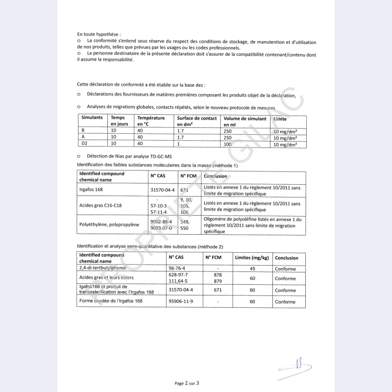 Each GILAC patient glass is, if necessary, guaranteed suitable for food contact, without bisphenol A and is supplied with a food safety certificate which guarantees strict compliance with all food safety standards in force in France and Europe. Ask our sales department.