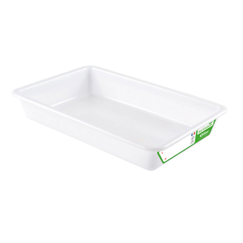 D'aspect blanc sans colorant, le bac plat en matière biosourcée est garanti sans odeur.