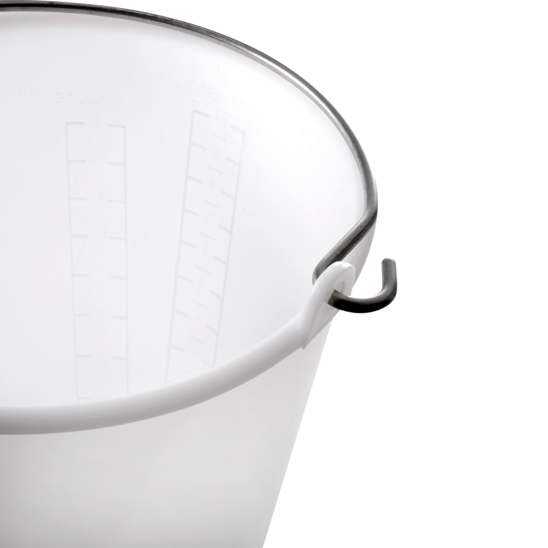 Seau très résistant avec anse en inox. Anse en inox assurant une excellente protection contre l'oxydation et une très bonne résistance mécanique. Jupe d'usure garantissant une longévité optimum du produit. Polyéthylène basse densité pour une durabilité extrême. Les dimensions extérieures sont indiquées avec la anse.