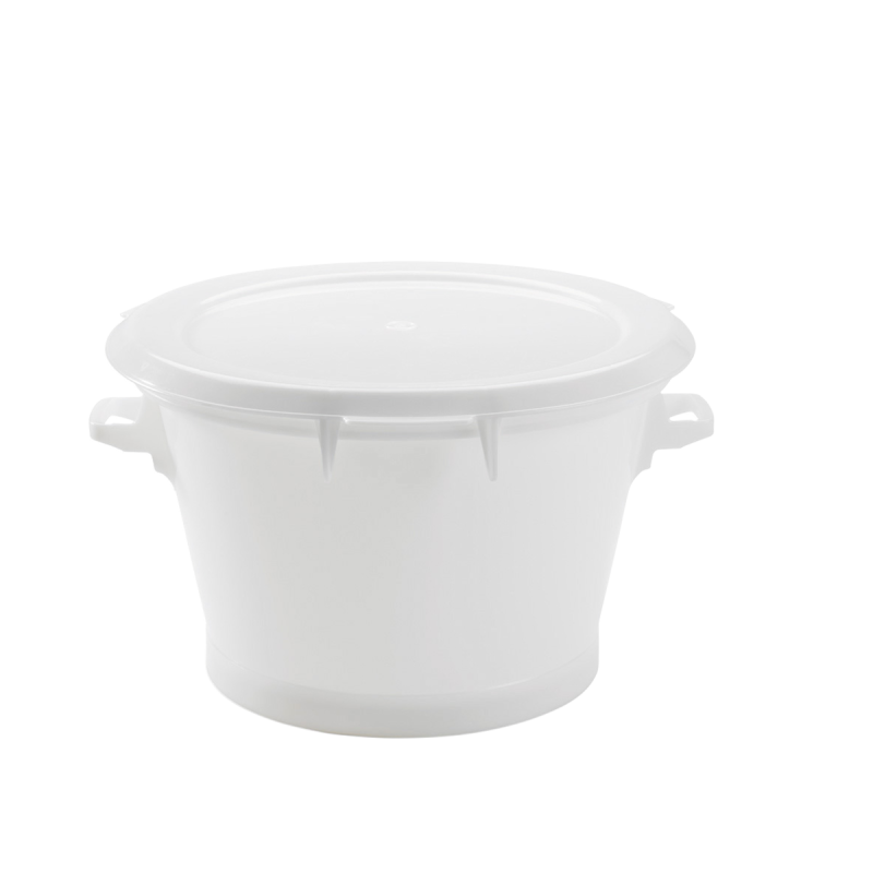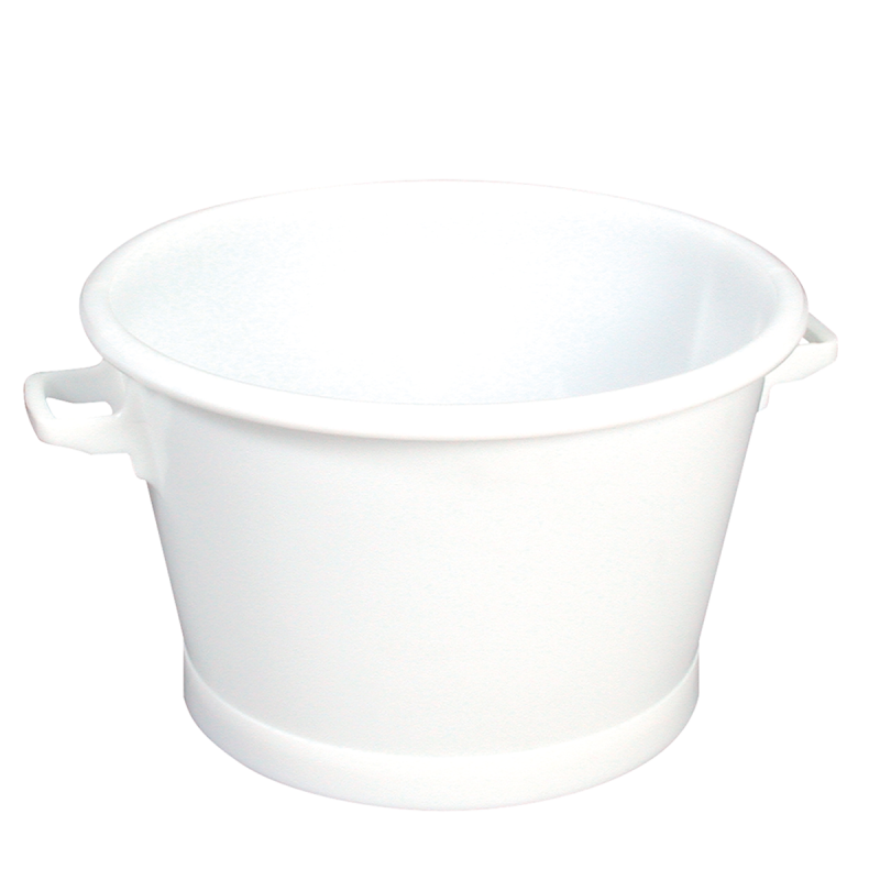 Baquet rond, très grande résistance. Parois rigides pour éviter la déformation à la charge. Jupe d'usure pour une grande durabilité. Poignées ergonomiques pour faciliter la prise en main. Nettoyage et séchage facile. Dimensions indiquées avec poignées.