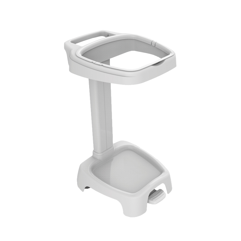 Support sac sans couvercle pour être utilisé avec un couvercle de la couleur de son choix en option. La poignée droite, à l'arrière, permet un bon positionnement du support sac contre le mur.